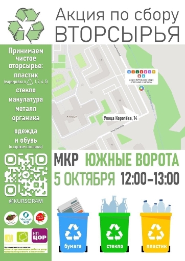 В микрорайоне Южные ворота 5 октября с 12.00 до 14.00 пройдёт большая акция сбора вторсырья, организованная активистами КуРСОра и томичами.